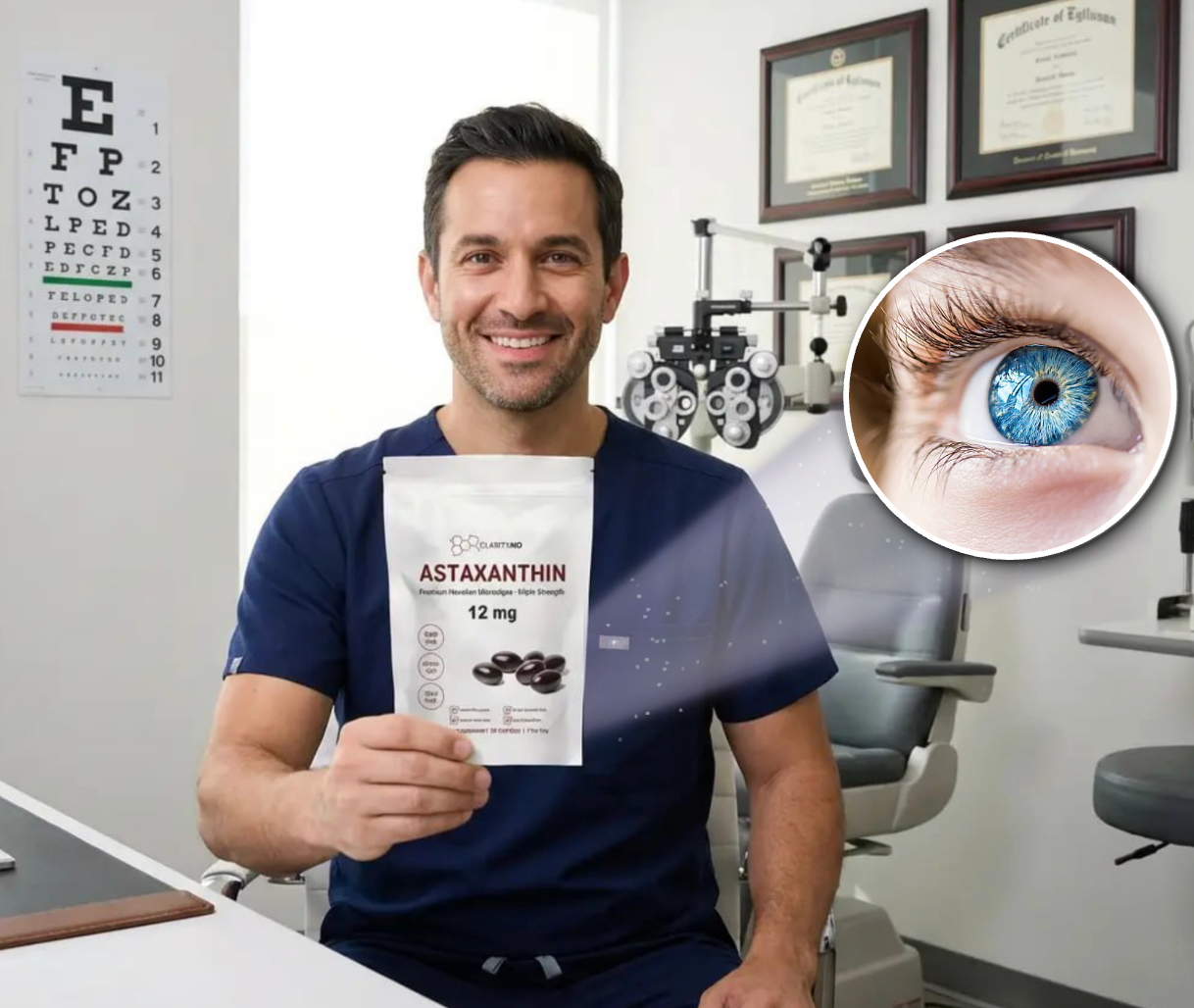 Clarity MD's Astaxanthin crosses this barrier, reduces eye strain, improves visual acuity - making it an essential protector for age-related vision decline this year
